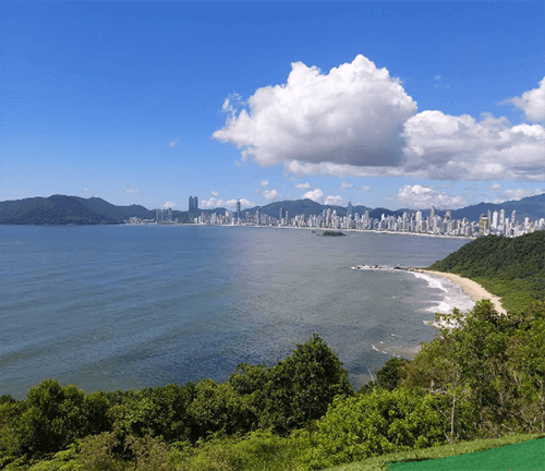 Chegar ao topo do Sergipe Itajaí é ser recebido por um dos cenários mais espetaculares de Santa Catarina. Do mirante natural, a vista se abre em um panorama de 360°, onde à direita se destacam as praias urbanas de Balneário Camboriú, com sua orla vibrante e arranha-céus à beira-mar, e à esquerda a cidade portuária de Itajaí, com seu movimento cultural e náutico.